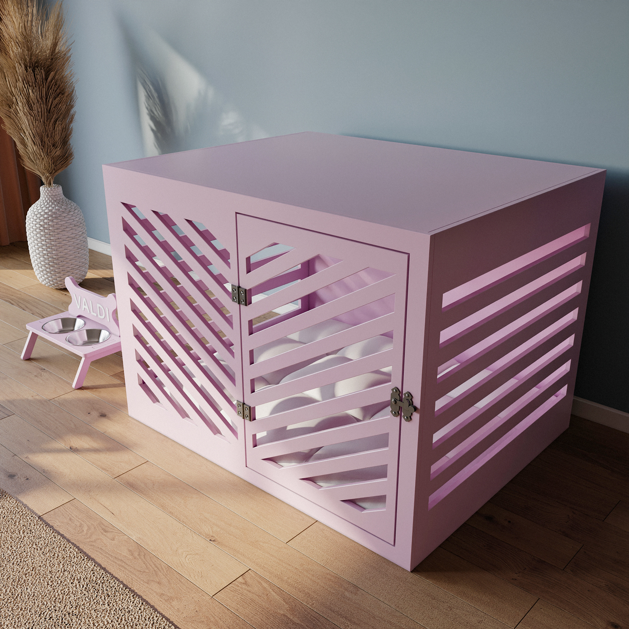 Modern Köpek Kulübesi Küçük Boy V Kapı Model, El Yapımı, Birinci Sınıf Ahşap, Hediye Mama Kabı