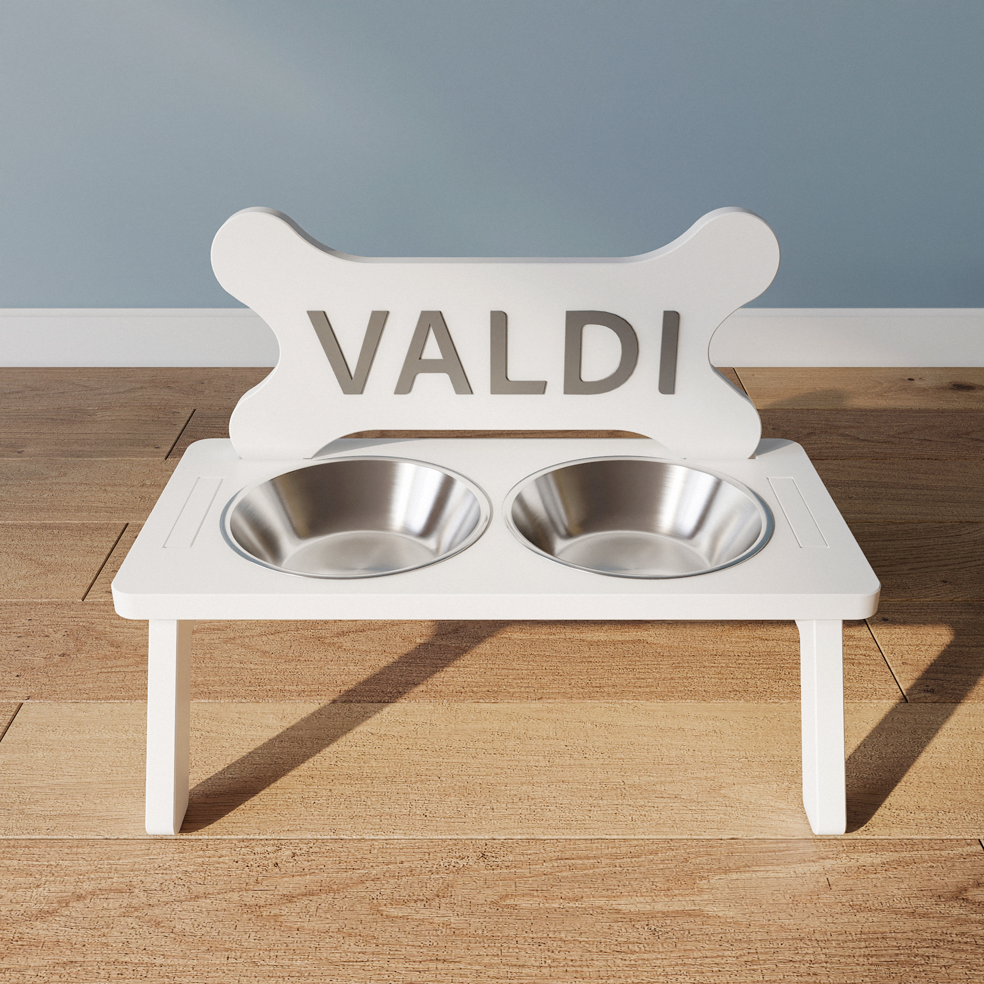 İsteğe bağlı olarak mama kabının üzerindeki VALDI yazısı yerine evcil hayvanınızın ismi yazılacaktır. Ürünün üzerine yazılacak ismi sipariş verdikten sonra sipariş verenin ismi ile birlikte bize iletebilirsiniz. İsim yazılmasını istemediğiniz takdirde o kısım boş bırakılacaktır.