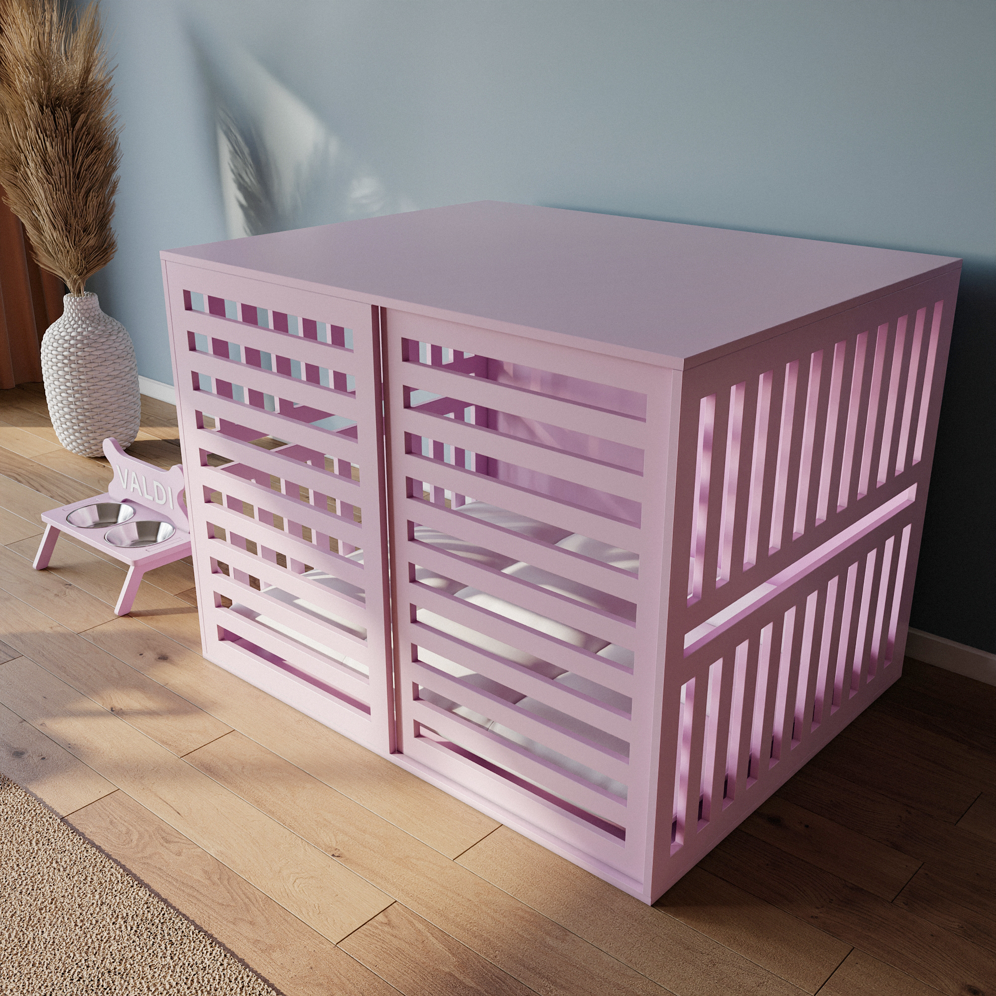 Modern Köpek Kulübesi Küçük Boy Sürgülü Model, El Yapımı, Birinci Sınıf Ahşap, Hediye Mama Kabı