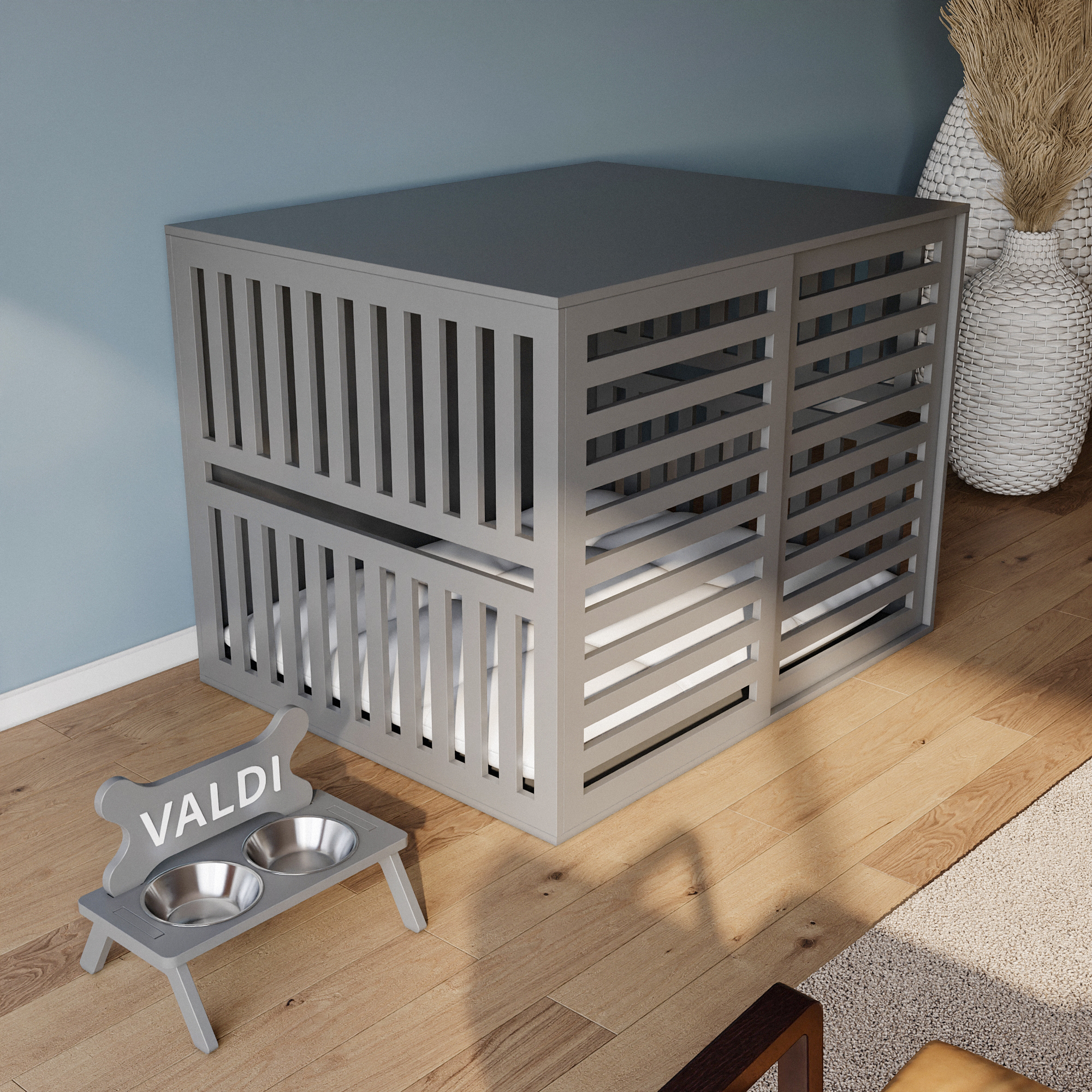 Ürün yanında köpek kulübesi ile aynı boya ve ahşap yapısına sahip, tasları paslanmaz çelik olan mama kabı hediye edilmektedir.