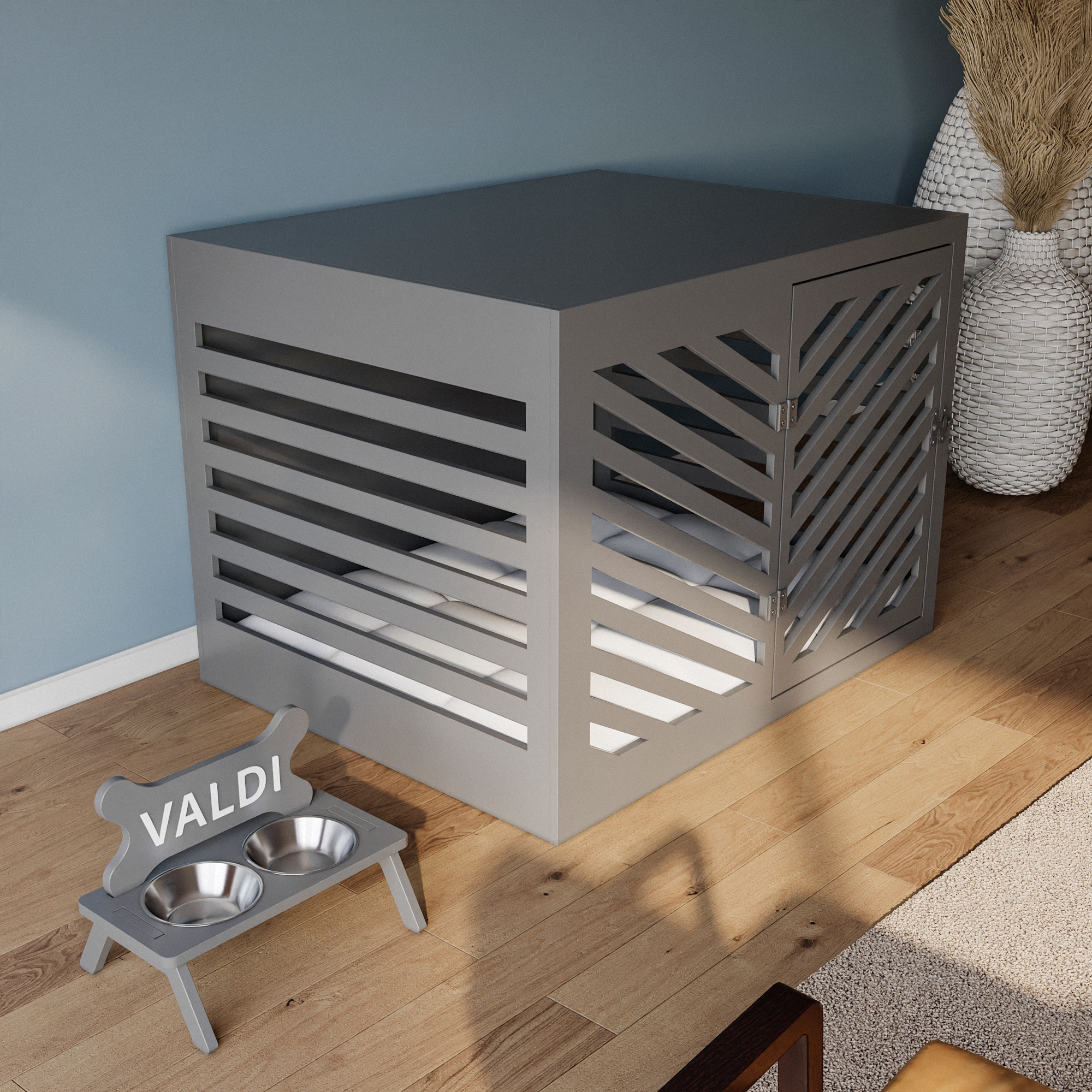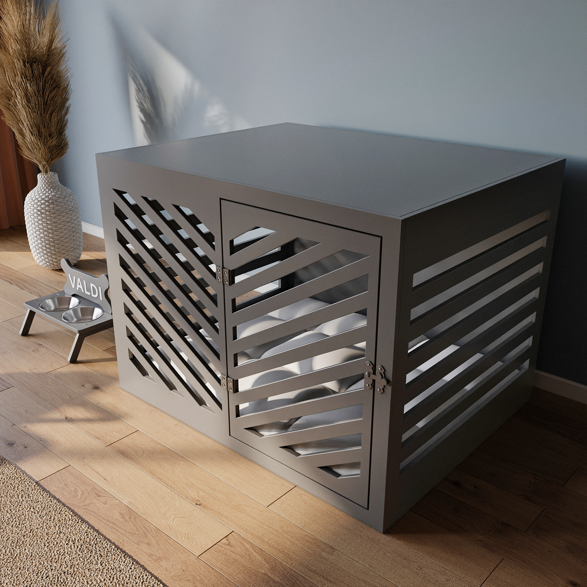 Modern Köpek Kulübesi Küçük Boy V Kapı Model, El Yapımı, Birinci Sınıf Ahşap, Hediye Mama Kabı